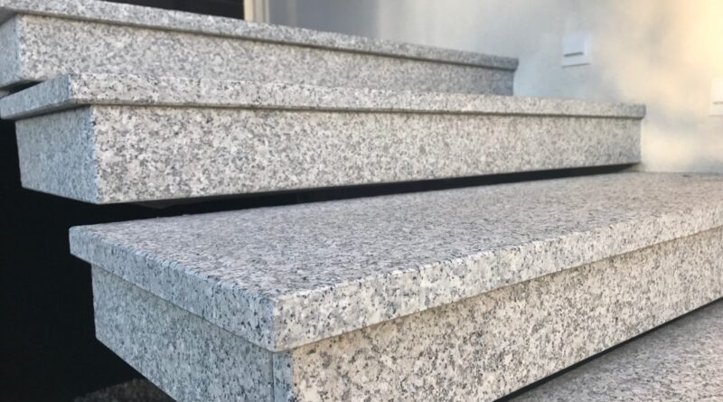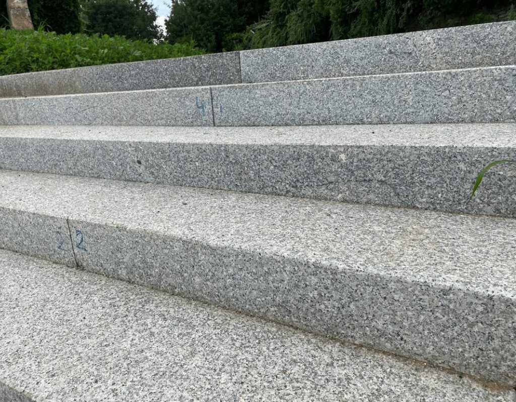 Z czego wykonać tzw. „podstopnice”, czyli pionowe elementy schodów? Zdecydowanie najlepiej i najtrwalej jest użyć tego samego granitu, dociętego na odpowiednią wysokość. Stosowanie tynku lub farby na pionowych ściankach schodów często kończy się ich szybkim obijaniem przez noski butów podczas wchodzenia. Granitowy podstopień zapewnia pełną ochronę wylewki oraz wizualną, elegancką spójność całej bryły schodów.