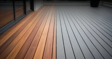 • Drewno: Przepiękny i ciepły materiał, jednak na schodach wejściowych – gdzie woda często „stoi”, a z butów osypuje się piasek – wymaga rygorystycznej, uciążliwej i kosztownej konserwacji. Bez niej szybko szarzeje i butwieje.