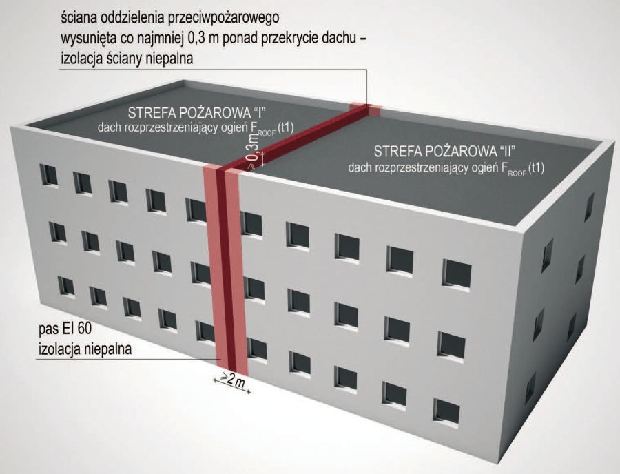 Ściana oddzielenia przeciwpożarowego. Źródło: https://www.izolacje.com.pl/artykul/dachy/282359,bezpieczenstwo-pozarowe-dachow